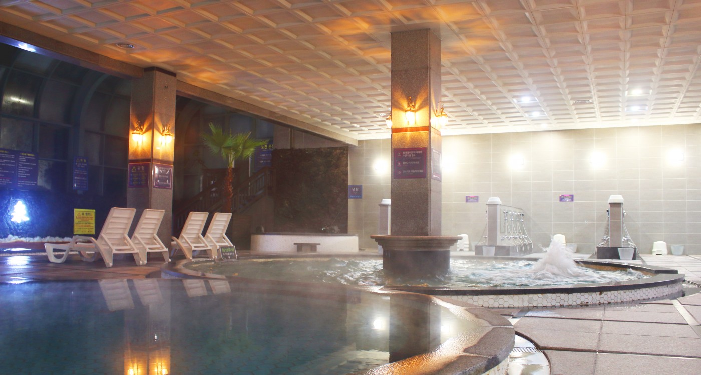 이곳은 지하 1,000m 암반에서 용출되는 중탄산나트륨 온천수 를 사용하는 것이 특징입니다. 혈액순환 촉진과 피로 회복에 도움을 준다고 알려져 있습니다.