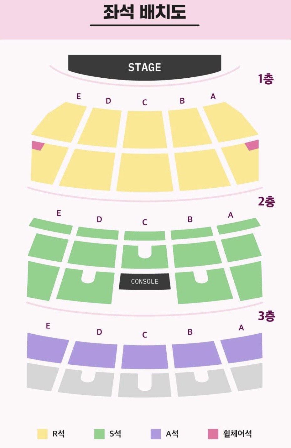 좌석은 전석 지정좌석제로 운영되며, R석·S석·A석 으로 구분됩니다.