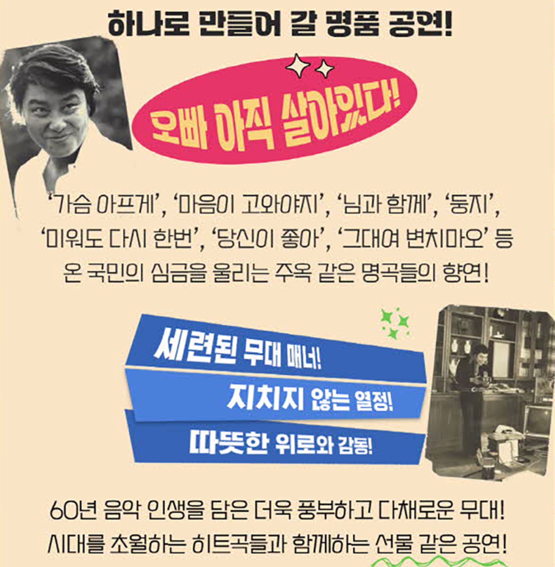 공연 전후로 남진 포토존과 기념 굿즈 부스도 운영될 예정이라고 합니다. 포스터와 엽서, 한정판 CD 등을 현장에서 구입할 수 있다고 하네요.