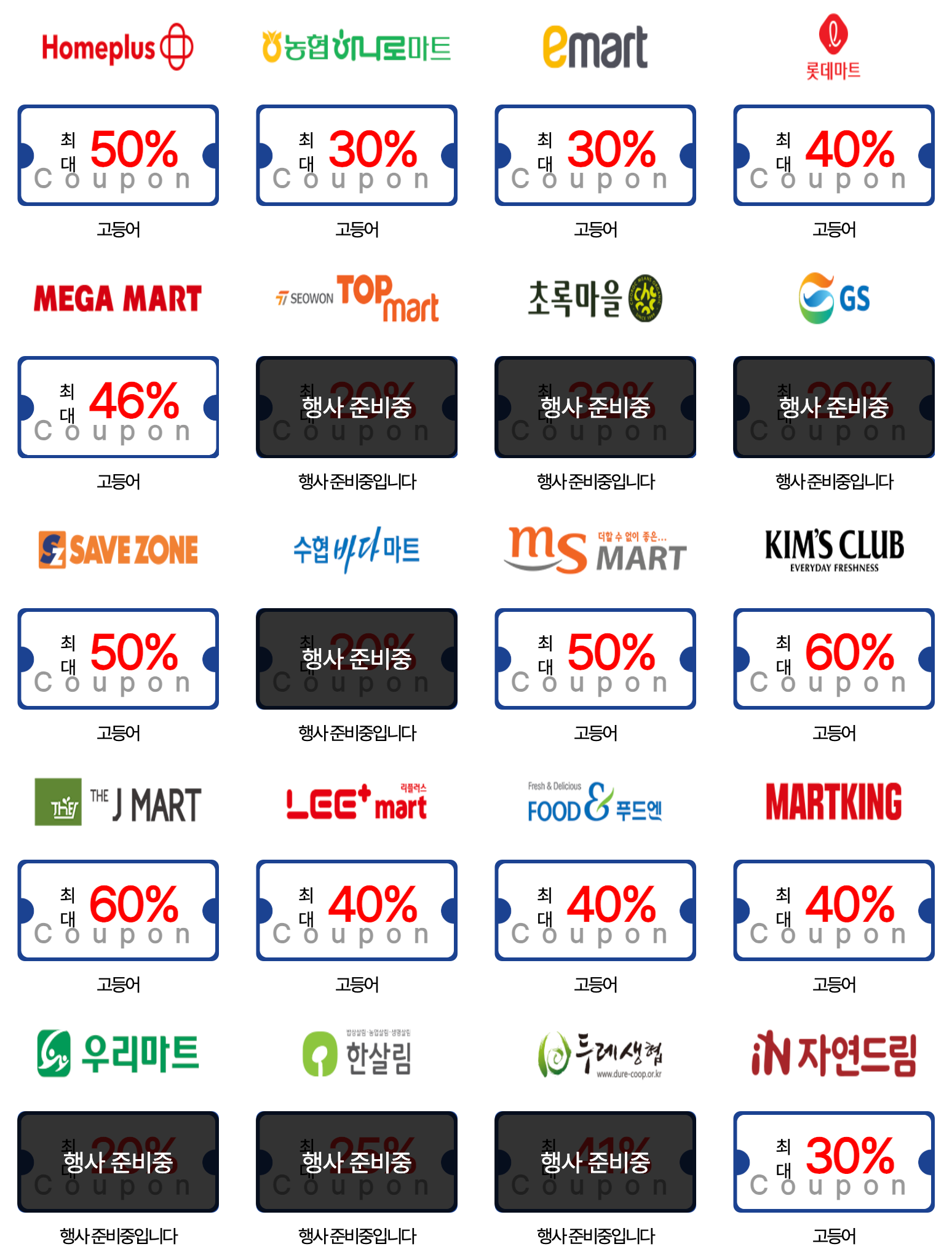 | 대형마트 | 메가마트 | 1.9(금) ~ 1.25(일) |