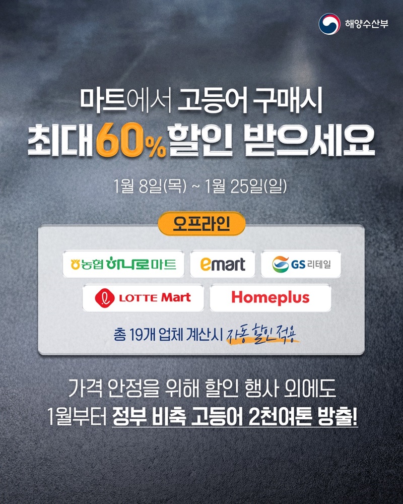 평소 고등어 가격 때문에 망설이셨다면, 이번 1월 8일부터 25일까지는 한 번쯤 장바구니에 담아보셔도 괜찮은 타이밍입니다.