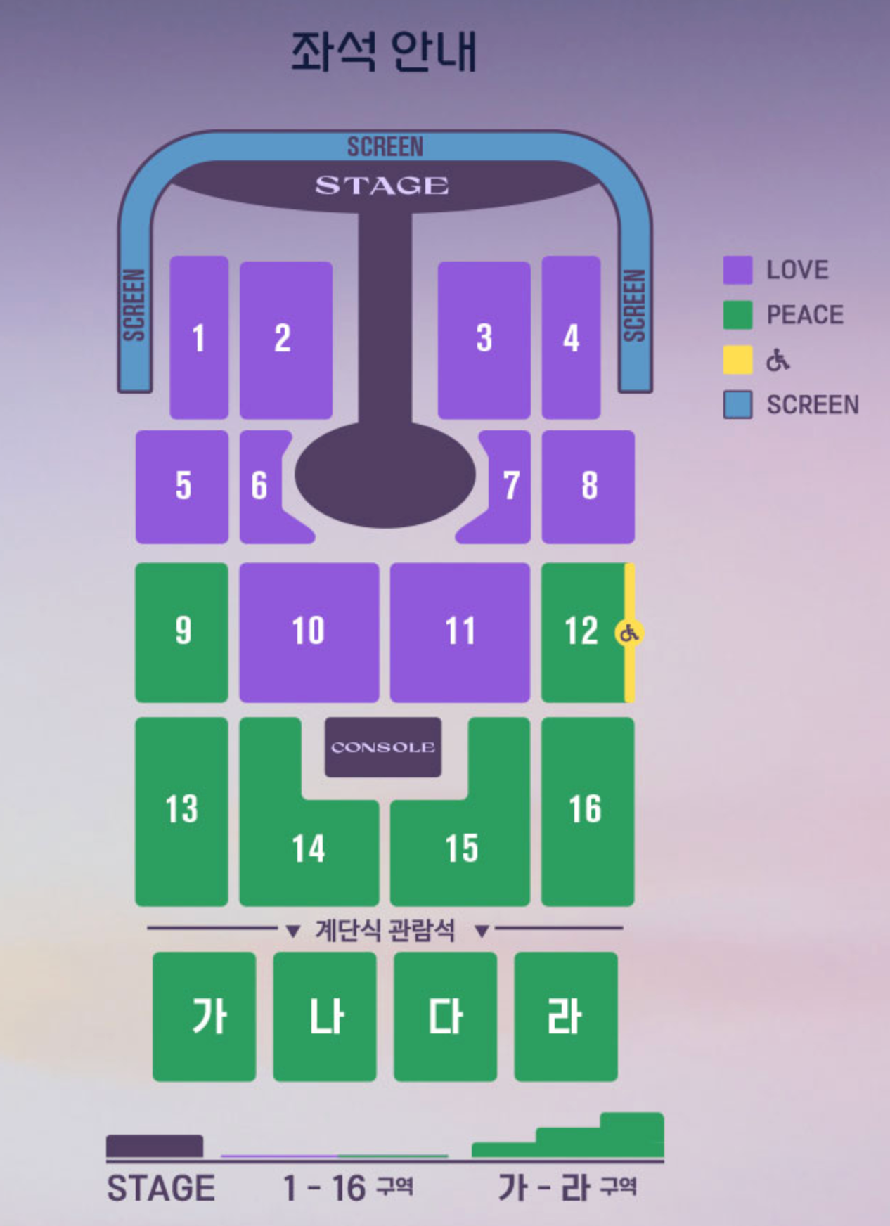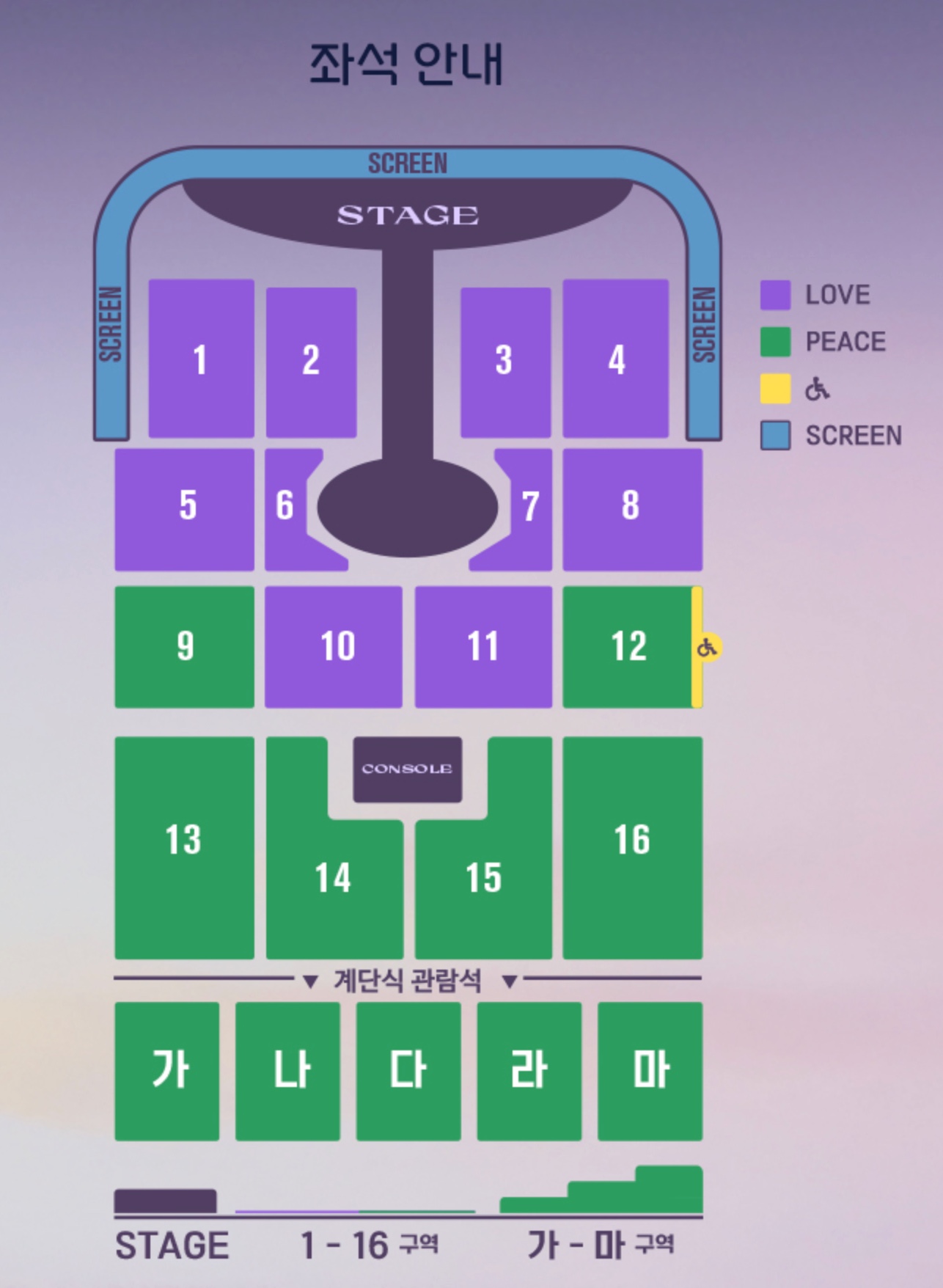 가격은 도시별로 동일하게 LOVE석 17만 6천 원, PEACE석 15만 4천 원이며, 서울 공연 가족석은 2인 기준 1인당 13만 2천 원입니다. 저도 가족석으로 관람했던 적이 있는데, 좌석 간 간격이 넉넉해서 부모님 모시고 가기에도 꽤 편안했어요.