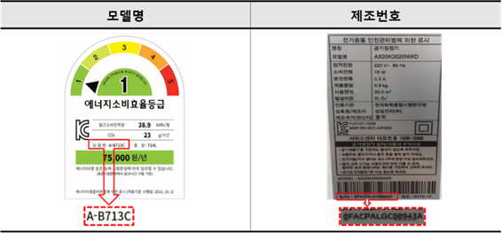 - 에너지소비효율 라벨이 없는 제품은 지원 불가