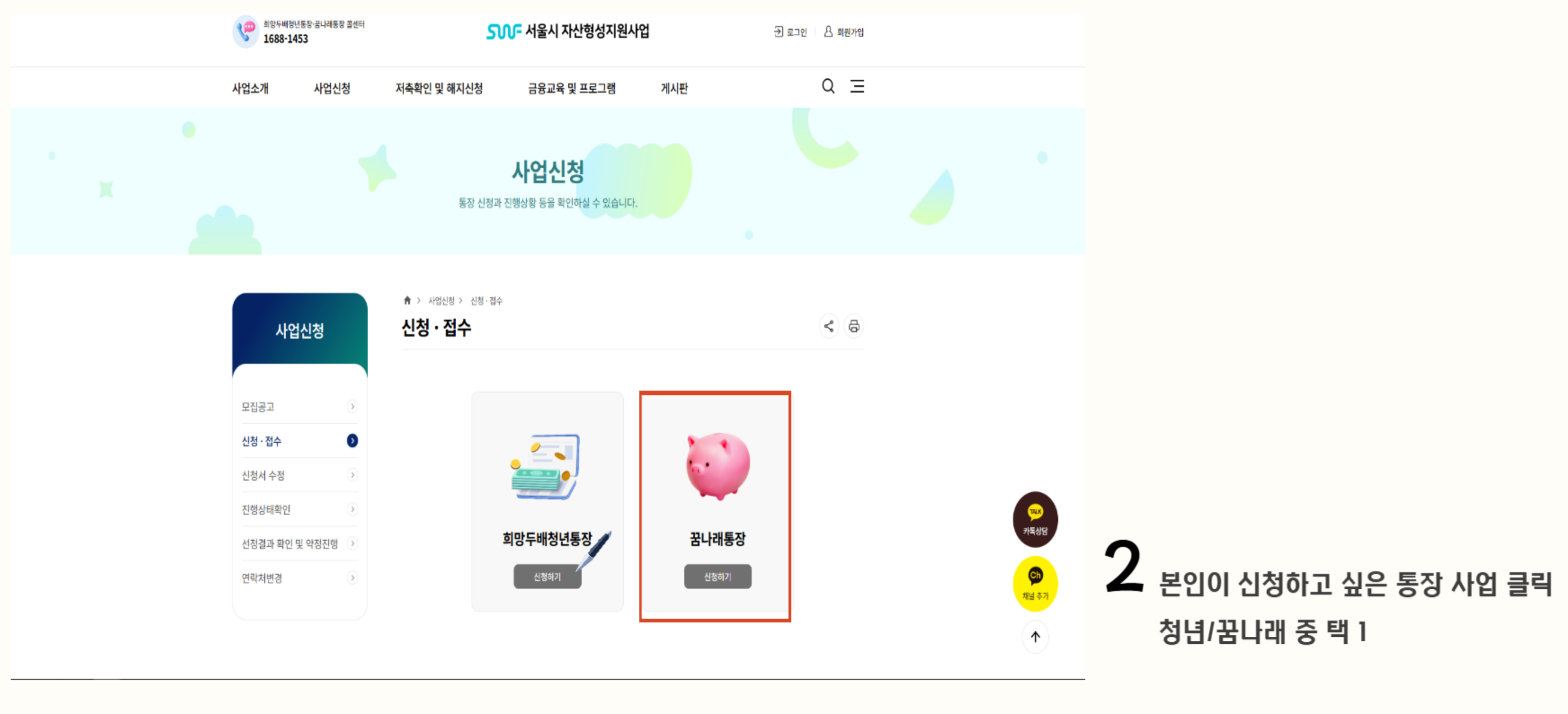 - 문의전화: 꿈나래통장 콜센터 1688-1453