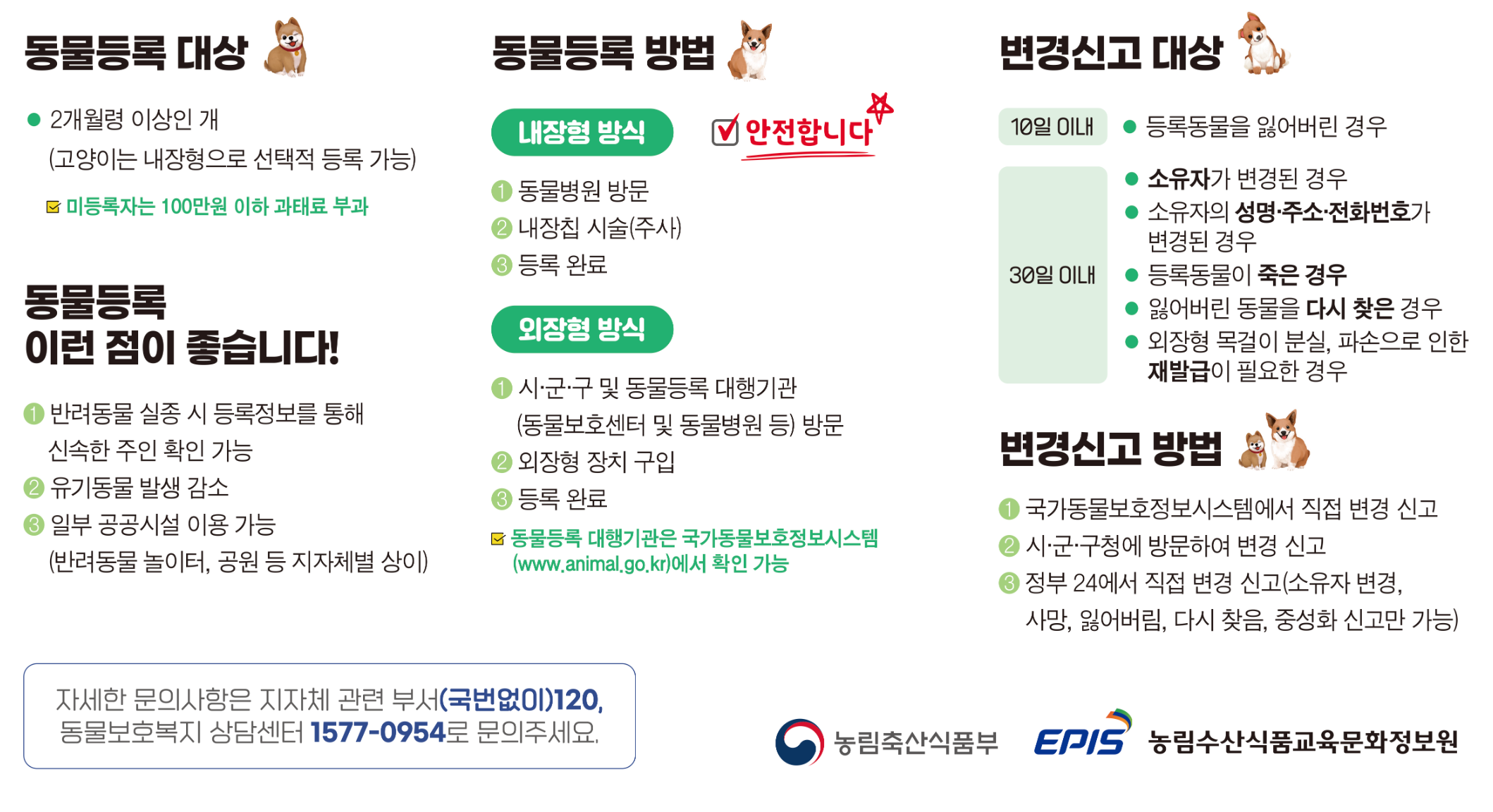 등록을 해두면 실종 시 신속한 주인 확인이 가능하고, 유기 방지와 각종 공공시설 이용에도 도움이 됩니다.