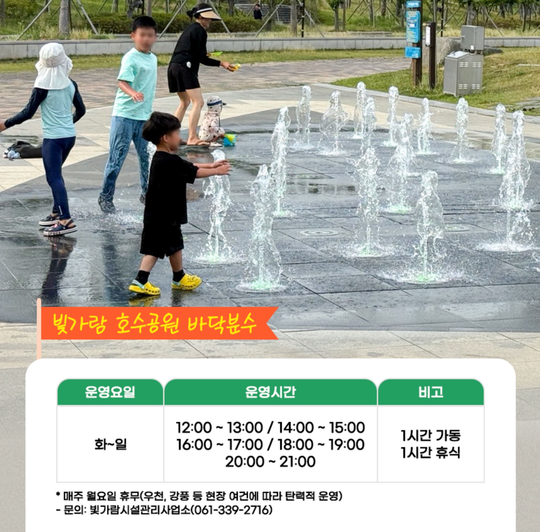 1시간 가동 / 1시간 휴식 | 빛가람시설관리사업소 (☎061-339-2716) |