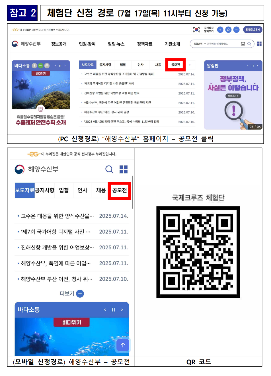 모집공고 및 향후 일정 안내는 모두 해수부 누리집에 게시되므로 수시로 확인 바랍니다.