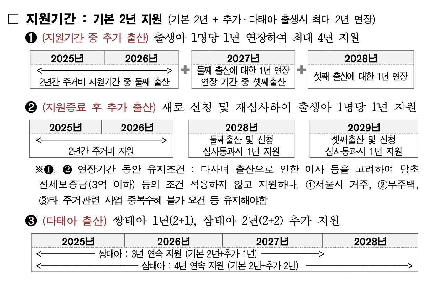 | 타 유사사업 수혜 | 신생아 특례 등 중복수혜 제한 |