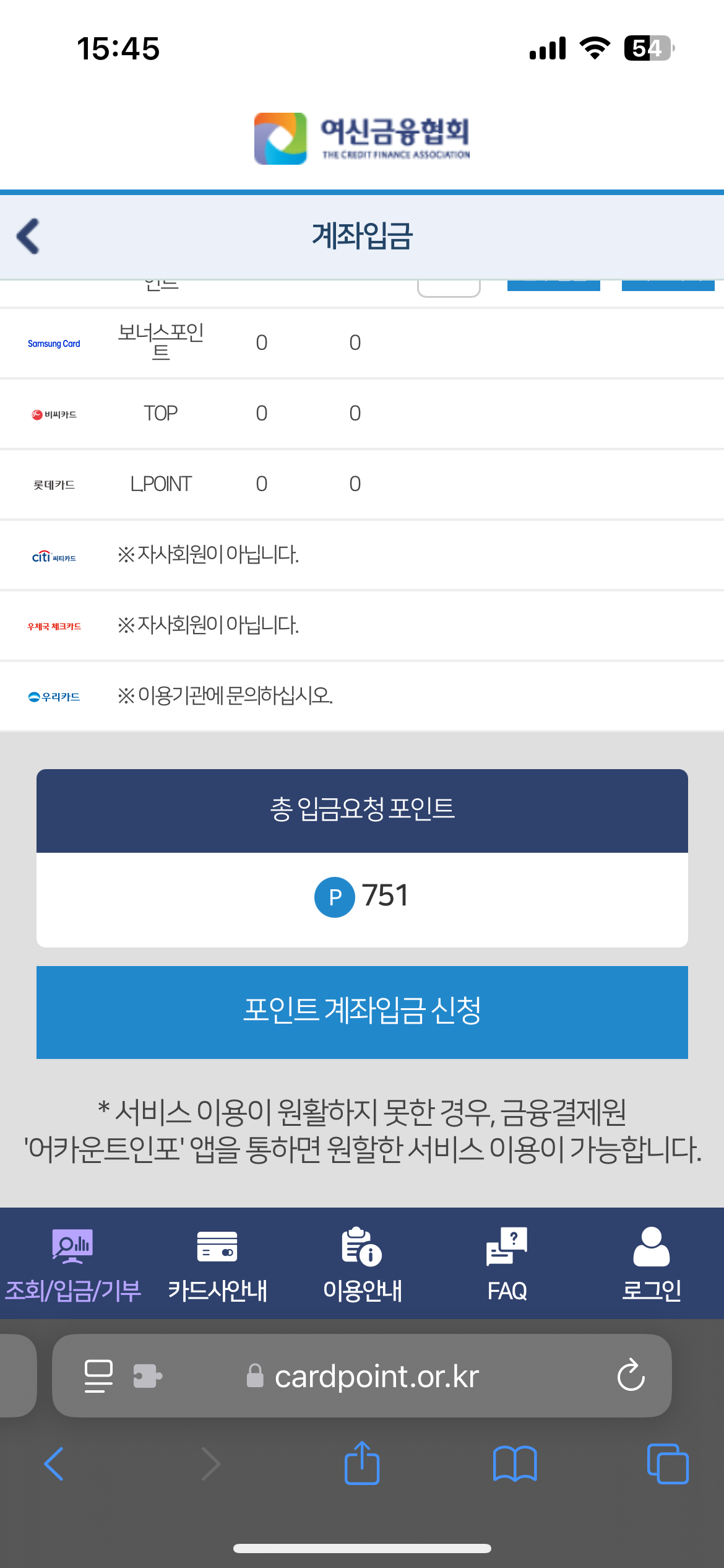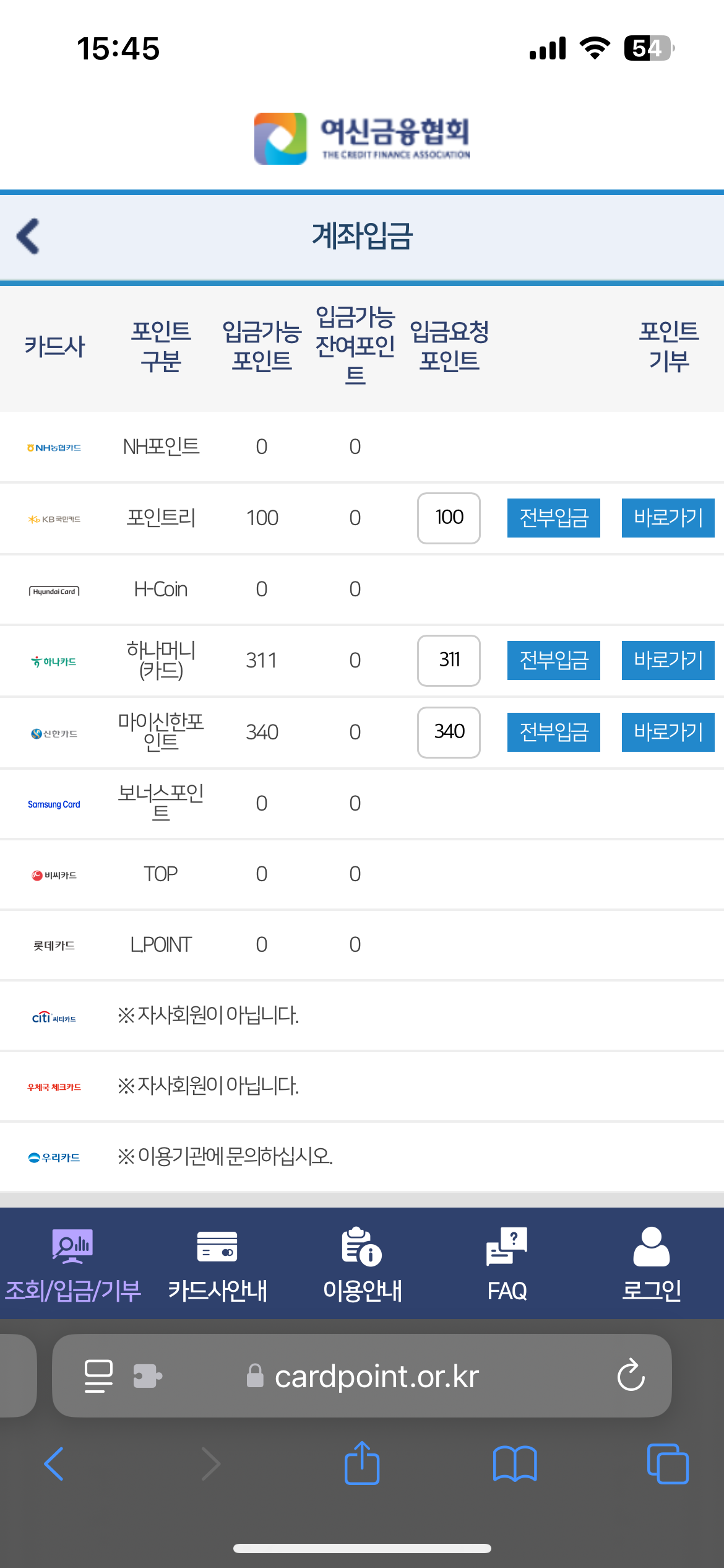 이 서비스는 금융결제원과 여신금융협회에서 제공하는 것으로, 여러 카드사의 포인트를 한 번에 조회하고 원하는 계좌로 현금화까지 할 수 있습니다.