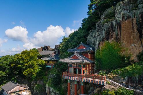 해발 531m 오산 정상 절벽 위에 자리한 암자로, 전망대에서 내려다보는 풍경이 압도적입니다. 섬진강과 구례 시내가 한눈에 들어와 사진 명소로도 잘 알려져 있으며, 벚꽃 시즌에는 특히 많은 분들이 찾는 구례의 대표적인 전망 코스입니다.