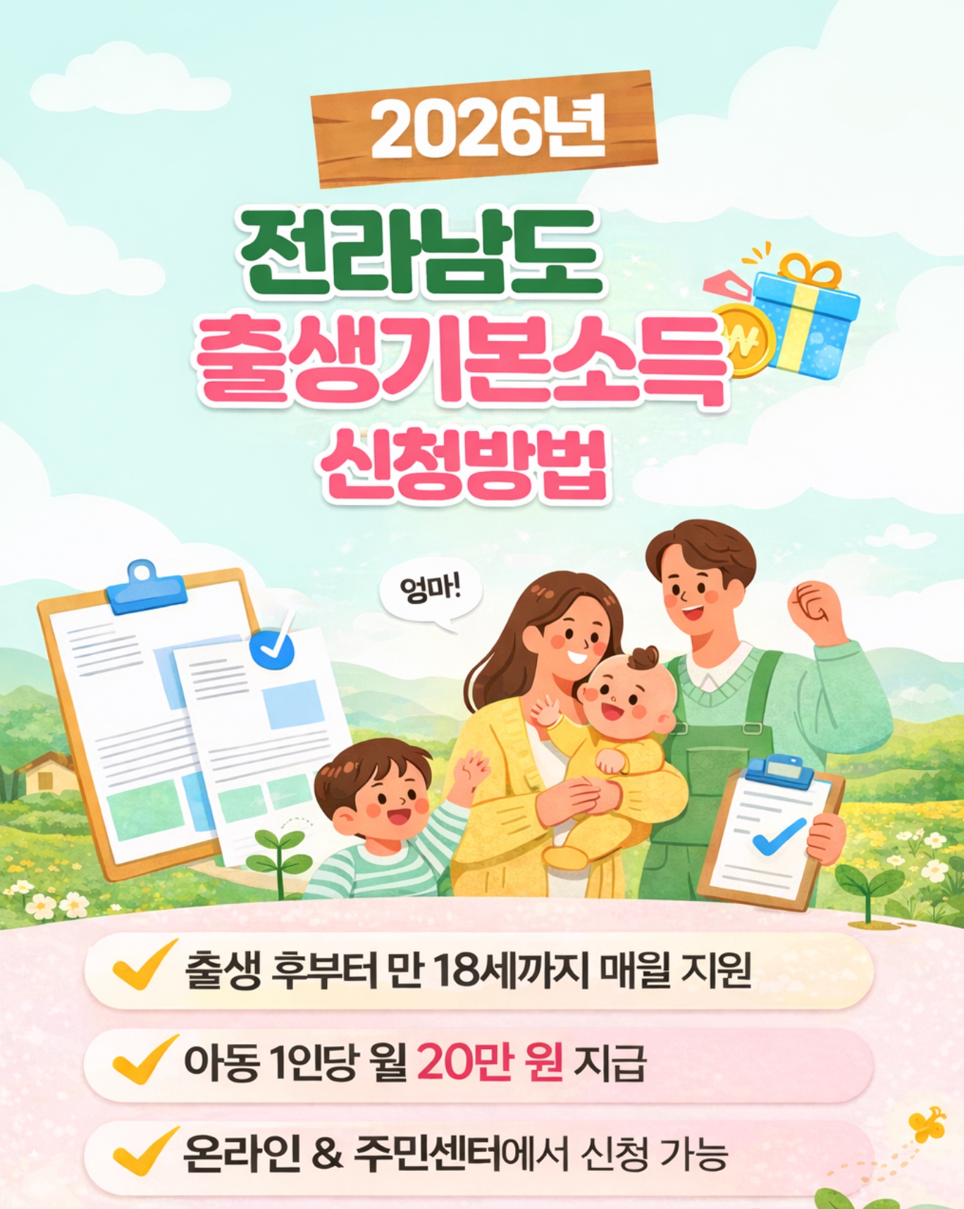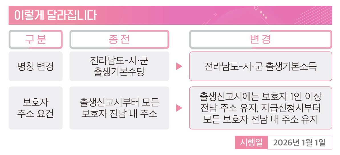 2026 전라남도 출생기본소득은 출생부터 만 18세까지 매월 지급되는 장기 지원 제도입니다.