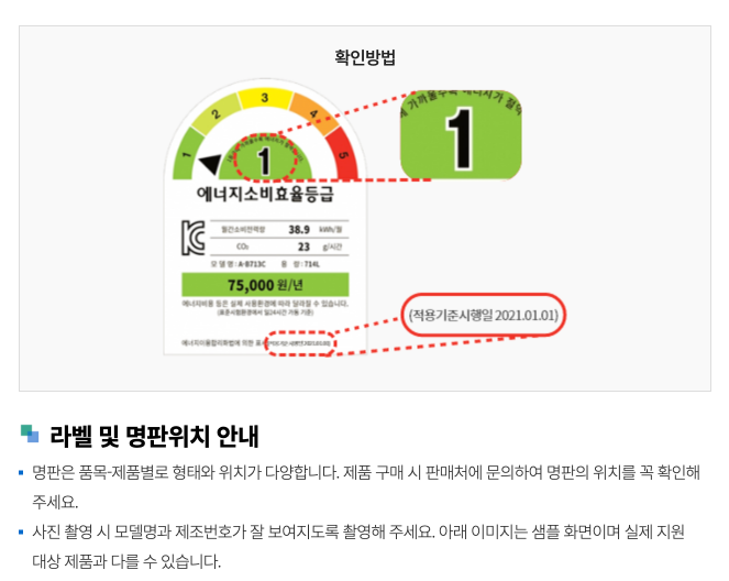 특히 에너지효율등급 라벨과 적용기준시행일을 놓쳐서 지원을 못 받는 경우가 많으니, 구매 전에 한 번 더 확인해보시는 걸 추천드려요.