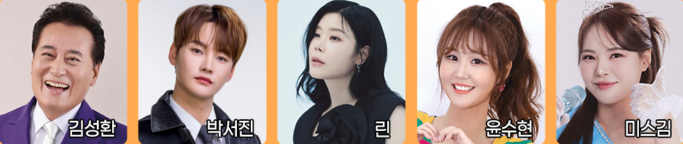 세대별로 좋아하는 가수가 고르게 포함돼 있어서 현장 분위기도 꽤 뜨거울 것으로 보입니다. 노래자랑은 참가자 무대도 재미있지만 초대가수 공연 기다리는 분들도 많습니다.